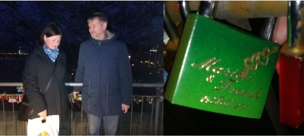 Zum Valentinstag waren Marion, Sandra, Jürgen und ich in Köln aus essen. Wir haben uns den Spaß geleistet ein Schloß an der Hohenzollernbrücke anzubringen und den Schlüssel in den Rhein zu werfen. Genauer gesagt hängt es nun am Geländer des Vorplatzes weil auf der Brücke einfach kein Platz mehr war. Wir waren auch auf der Hohe Straße und haben uns Accessoires für Karneval gekauft.