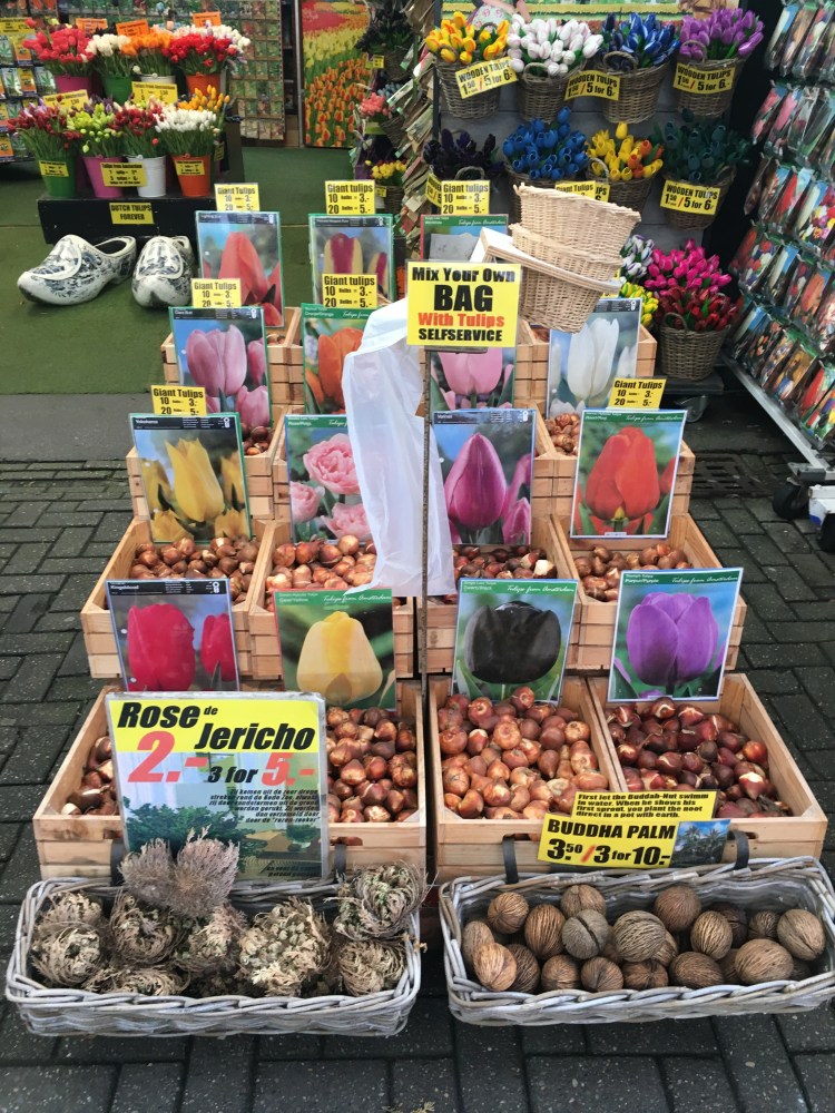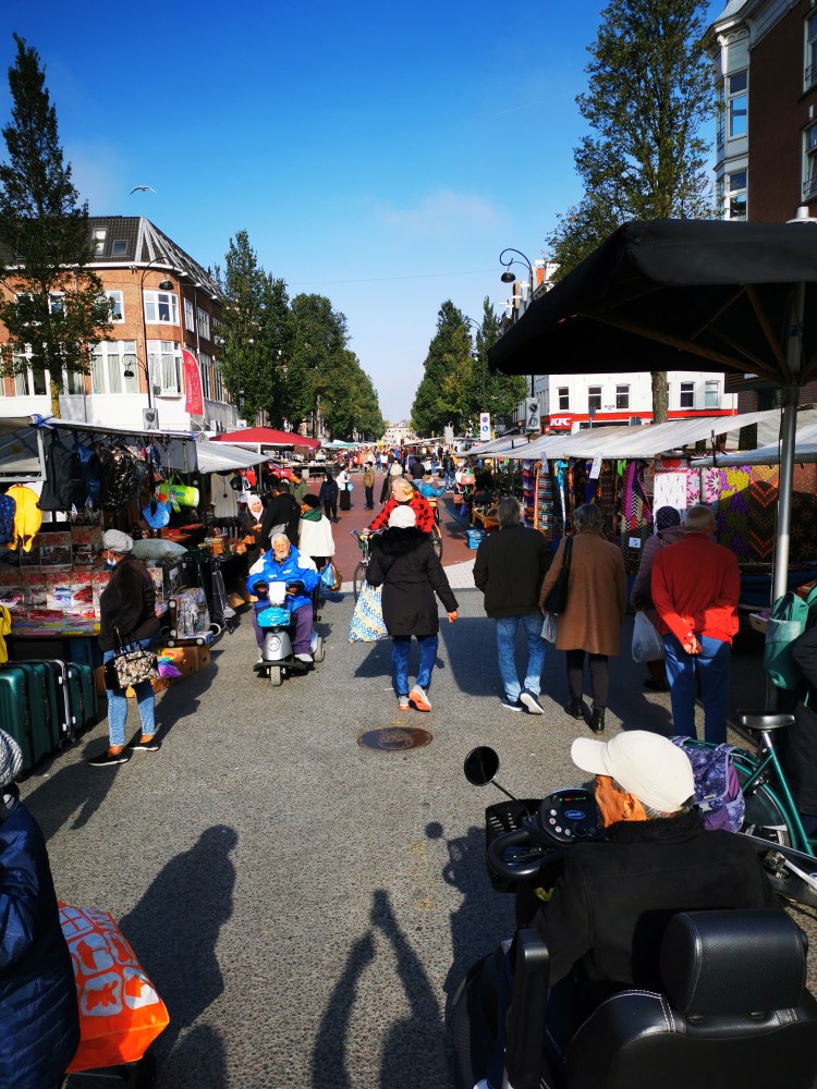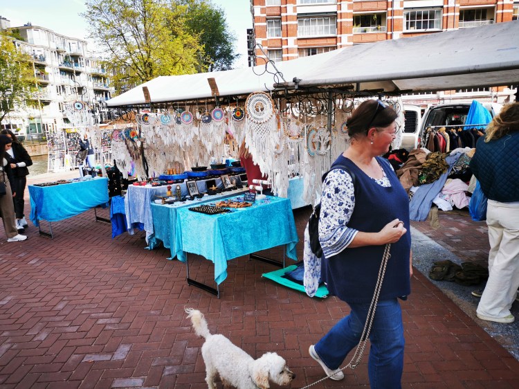 Wir haben viele Märkte besucht. Auf dem Weg zum Nieuwmarkt, an dem wir oft die Räder abstellten, war mir ein Flohmarkt aufgefallen. Es war der Flohmarkt an der Waterlooplein, angeblich der ältestete von Amsterdam. Geparkt haben wir die Räder vor dem Rembrant- Haus. An dem Tag waren wir auch noch auf dem Blumenmarkt. Auf dem Dappermarkt waren wir auch. Er ist eher ein sehr großer Wochenmarkt mit billigen Klamotten und Waren, die hauptsächlich aus Asien kommen. Aber es gibt auch viele Stände mit Obst und anderen Köstlichkeiten aus aller Herren Länder. Zuletzt waren wir noch auf dem Pekmarkt, obwohl wir eigentlich auf „de Bazaar“ wollten. Den haben wir aber nicht gefunden. Der Pekmarkt ist ein Wochenmarkt. Schön war die Fahrt dorthin weil wir mit einer Fähre übergesetzt haben. Die Fahrt ist kostenlos, so hatten wir eine weitere Gelegenheit Amsterdam vom Wasser aus zu sehen.
