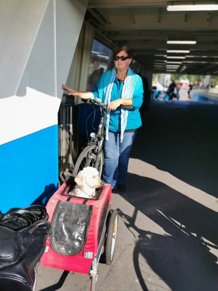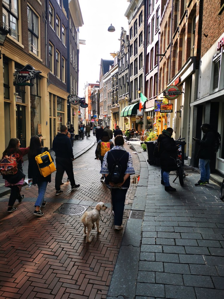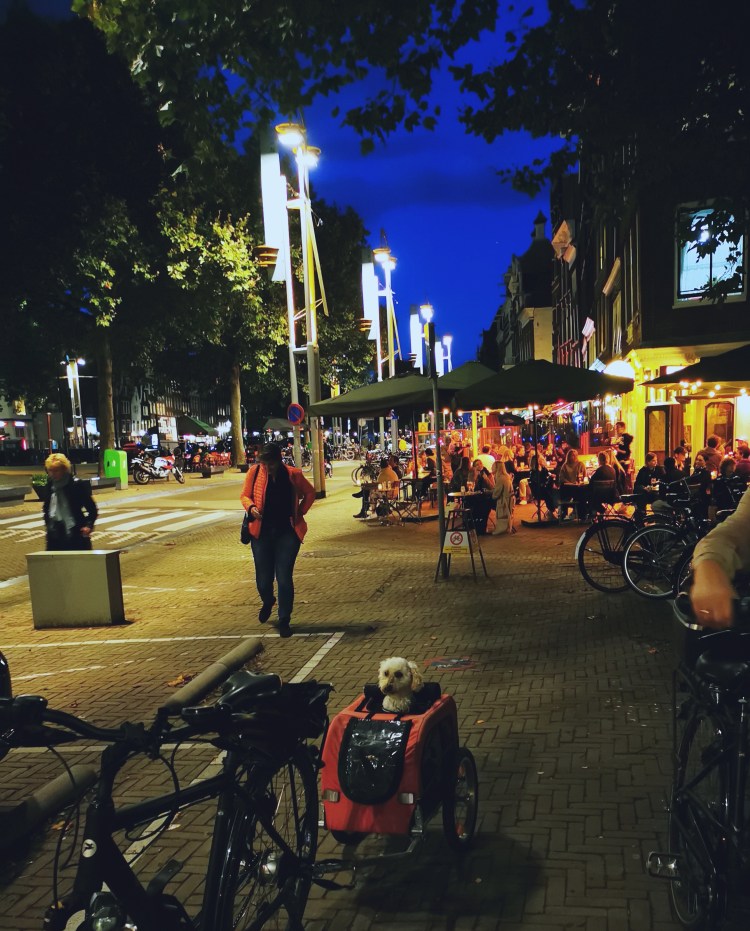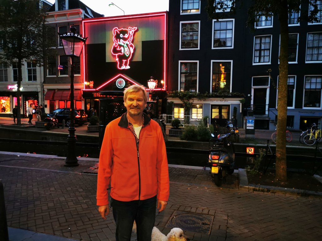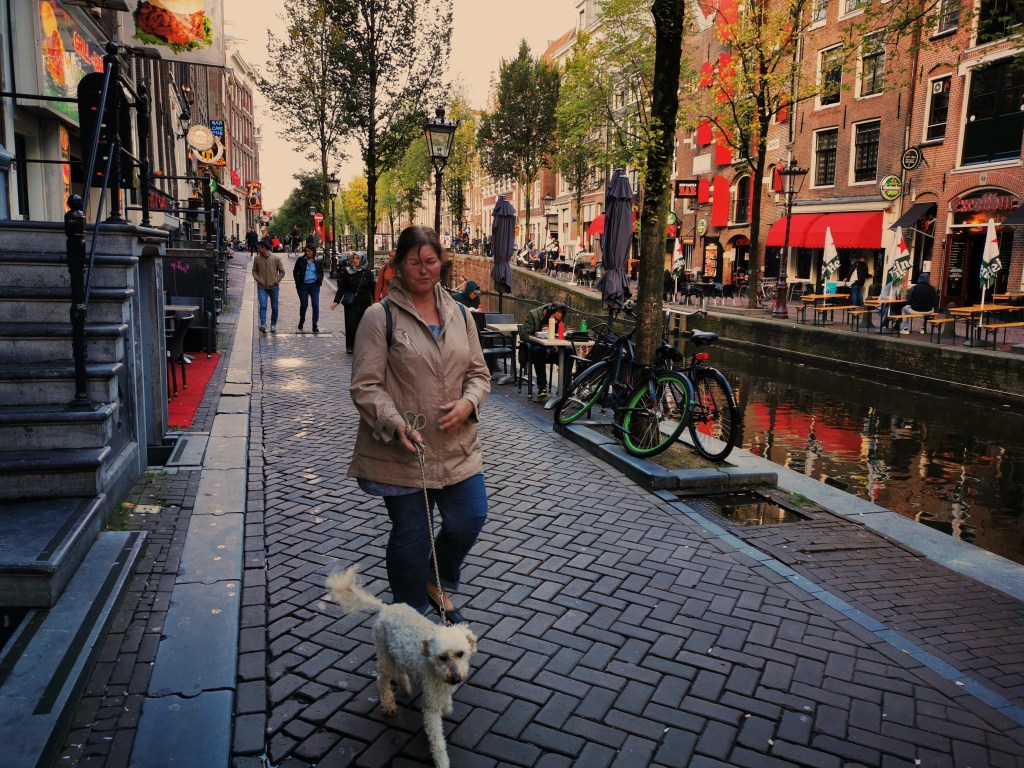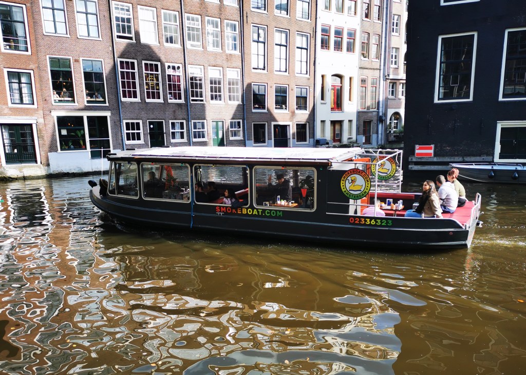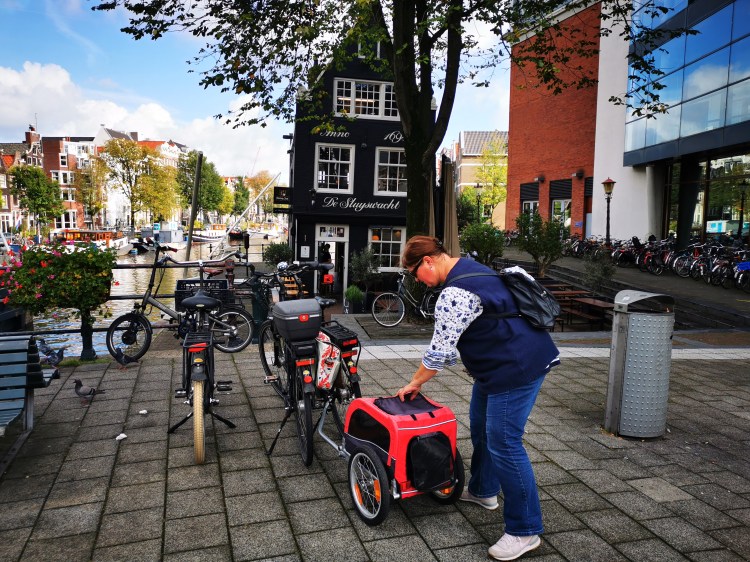 Die Tage in Amsterdam haben uns gut gefallen. Die Innenstadt riecht immer ein wenig nach Cannabis, machmal ist der Geruch aber auch stärker wenn man in der Nähe eines der Coffeeshops ist oder eins der Smokeboote (siehe Bild) vorbei kommt. Mit dem Wetter hatten wir Glück. Es hat zwar geregnet, aber immer nur nachts oder nur sehr wenig. In der Woche kommt man sich als Ü50 schon ziemlich alt vor. Der Alterdurchschnitt der Leute auf der Straße scheint dann bei 25 zu liegen. Am Wochenende relativiert sich das etwas. Bruce fand die 10 km Fahrt bis zum Zentrum nicht sooo toll, hat sich aber seinem Schiksal gefügt. In der Stadt hatte er keine Probleme. Er war da ganz entspannt, wie das Video unten zeigt.