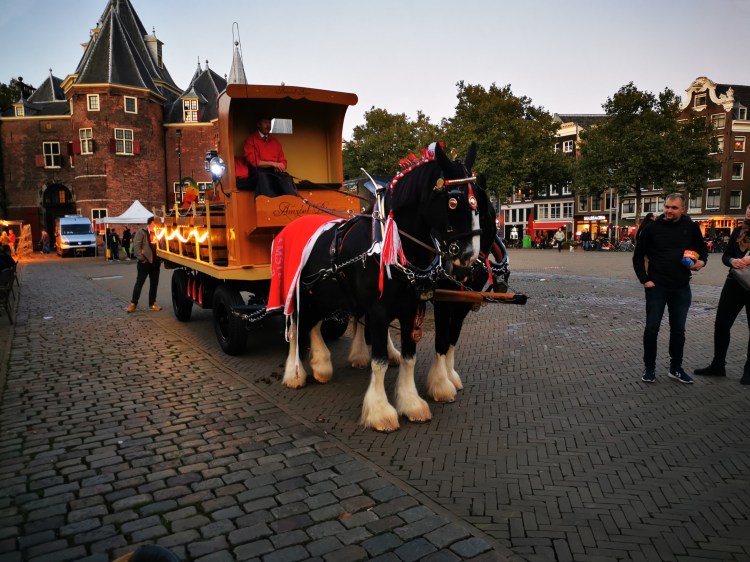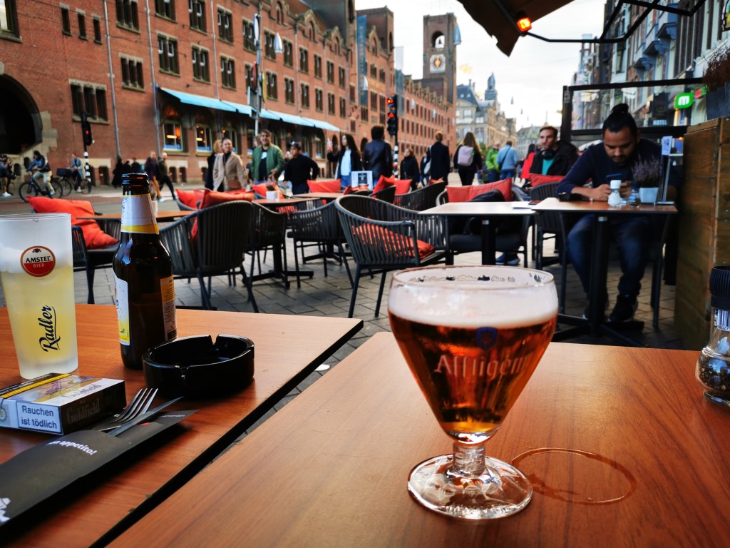 Da das Wetter richtig gut war, sind wir auch gleich mit den Rädern nach Amsterdam gefahren. Natürlich durchgängig auf gut ausgebauten Radwegen. Das Fahrrad ist in Amsterdam einfach das Verkehrsmittel der Wahl. Geparkt haben wir am Nieuwmarkt weil es sich so ergeben hat. Das er gleich neben dem Rotlichtviertel liegt wussten wir nicht. So sind wir erst mal durch das Rotlichtviertel geschlendert ohne das sofort zu merken. Durch little China, vorbei an der Kirche St. Nikolaus sind wir an die Anleger der Sigthseeing – Schiffe gekommen. An diesem Abend war es zu spät dazu, aber natürlich hatten wir eine Fahrt auf dem Plan. Wir haben erst mal etwas gegessen und getrunken.