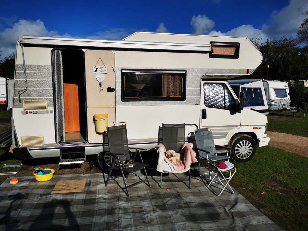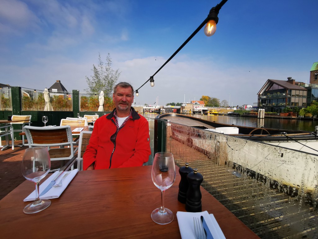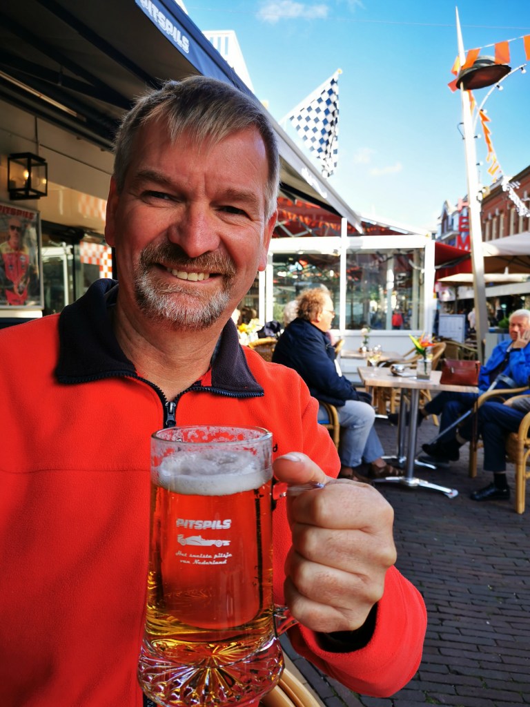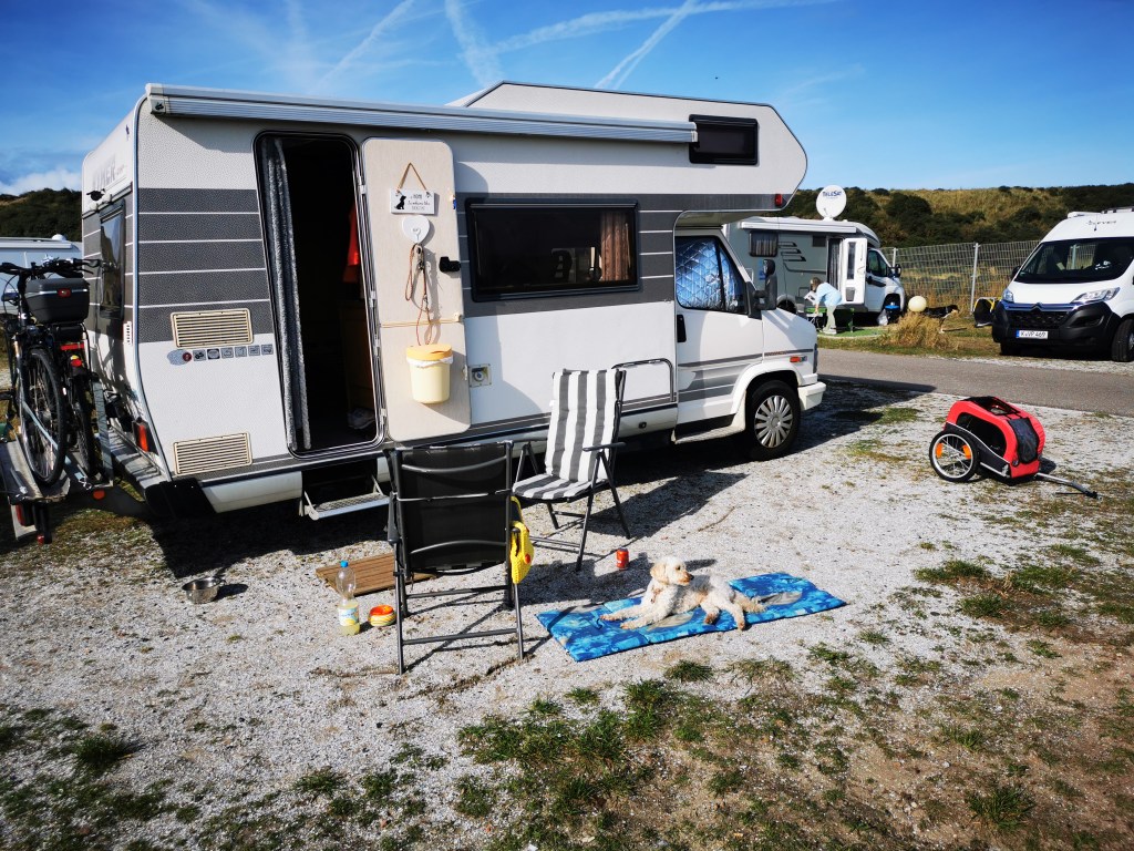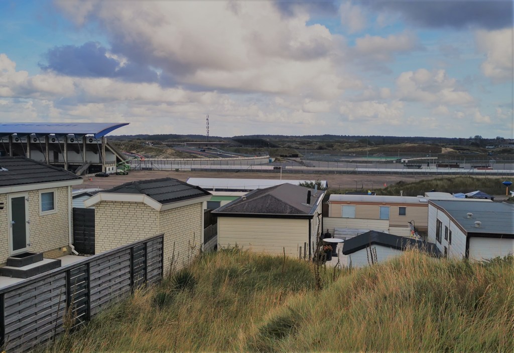 Auf dem Campingplatz hatten wir Leute kennen gelernt, die uns einen Platz in den Dünen in Bloemendaal aan Zee empfohlen hatten. Leider waren dort keine Hunde zugelassen. Deshalb sind wir weiter bis nach Zandvoort gefahren. Von Bloemendaal aus kommend, fanden wir als erstes den Camping „de Duinrand„. Der ist sogar preisgünstig, aber es stellte sich heraus, das daß Wlan nicht gut funktionierte. Ich rätselte erst was das für Gebäude hinter dem Platz sind und vermutete ein Stadion oder einen Flugplatz. Wie sich herausstellte ist es die Rennstrecke in Zandvoort. Die hatte ich nicht auf dem Plan. Ab und zu fuhren auch einige Autos ein Rennen. Der Lärm hielt sich aber in Grenzen. Um zum Strand zu kommen musste man zwar eine Straße überqueren, aber dann hatte man kilometer weit Sandstand. Ich habe es mir nicht nehmen lassen mit nackten Füssen durch das Wasser zu laufen. Zandvoort ist, mit den Hochhäusern an der Küste, eigentlich nicht nach unserem Geschmack. Im Zentrum sind aber typische Häuschen mit nur wenigen Stockwerken, so daß es doch schön ist mal durch die Straße zu schlendern. Mit Bruce bin ich morgens dort hin gejoggt um Brötchen zu holen. Natürlich ist viel auf Motorsport aufgemacht, so wie die Kneipe vor der wir gesessen haben.