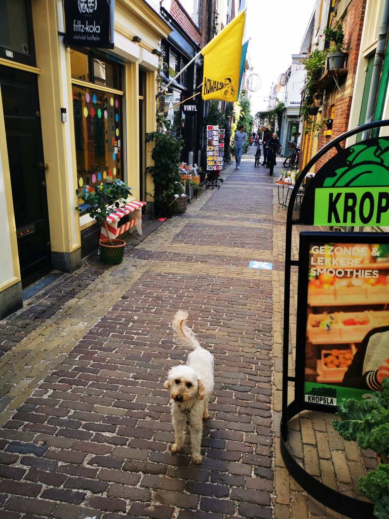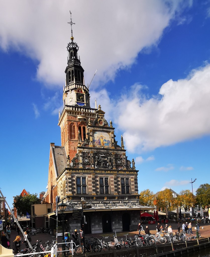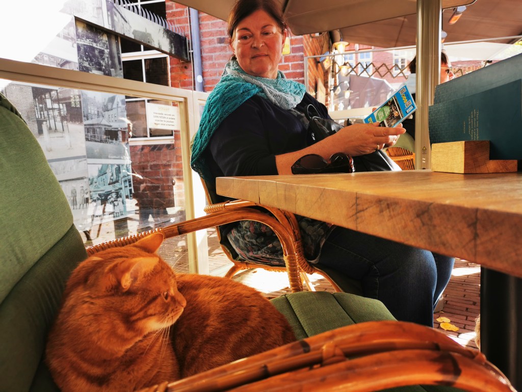 Mit den Rädern sind wir nach Alkmaar gefahren. Das sind nur ca. 7 km von unsrem Campingplatz aus. Marion hatte als Kind Verwandschaft dort und sie sind damals oft mit den Rädern nach Egmond ans Meer gefahren. Trotzdem hat Marion die Stadt kaum wiedererkannt. Ich hatte Alkmaar kleiner eingeschätzt, aber es hat eine ansehnliche Fußgängerzone und laut Wikipedia so viele Einwohner wie Bergisch Gladbach. In einem Cafe lag eine Katze auf dem Stuhl. Sie ließ sich auch von Bruce nicht aus der Ruhe bringen. Wir sind durch die ganze Innenstadt geschlendert. Es gibt viele interessante Ecken zu sehen. An das Rathaus konnte sich Marion noch erinnern, weil sie dort mal auf einer Hochzeit war.