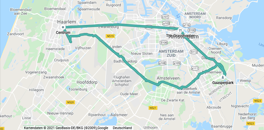 Mit den Rädern sind wir auch nach Harlem gefahren. Vom Zentrum aus sind das nur 18 km, aber von unserem Platz aus leider 10 km mehr. Auf dem Weg sind wir am Stadion vorbei gekommen und am Flughafen. Wir haben Sandra und Jürgen natürlich ein Bild vom Stadion gesendet. Harlem wurde als schöne Stadt mit mittelalterlichem Flair beschrieben. Ich war etwas enttäuscht als wir dann dort waren. Die Innenstadt ist schon schön und es gibt auch eine sehenswerte mittelalterliche Kathedrale, aber der ganz große Wow-Effekt blieb aus. Aber wir haben sehr lecker gegessen. Gleich an der Kirche fanden wir ein Sushi-Restaurant. Dort konnte man über ein Tablet bestellen und sie boten „all you can eat“ an. Im Nachhinein denke ich, die Radtour hätten wir uns sparen können. Die Strecke ist erstens nicht schön, von Harlem ist wirklich nur die Innenstadt sehenswert und wir hätten Harlem von Zandvoort aus besser erreichen können. In Zandvoort waren wir nach Amsterdam. Sportlich gesehen war es aber eine tolle Leistung von Marion.