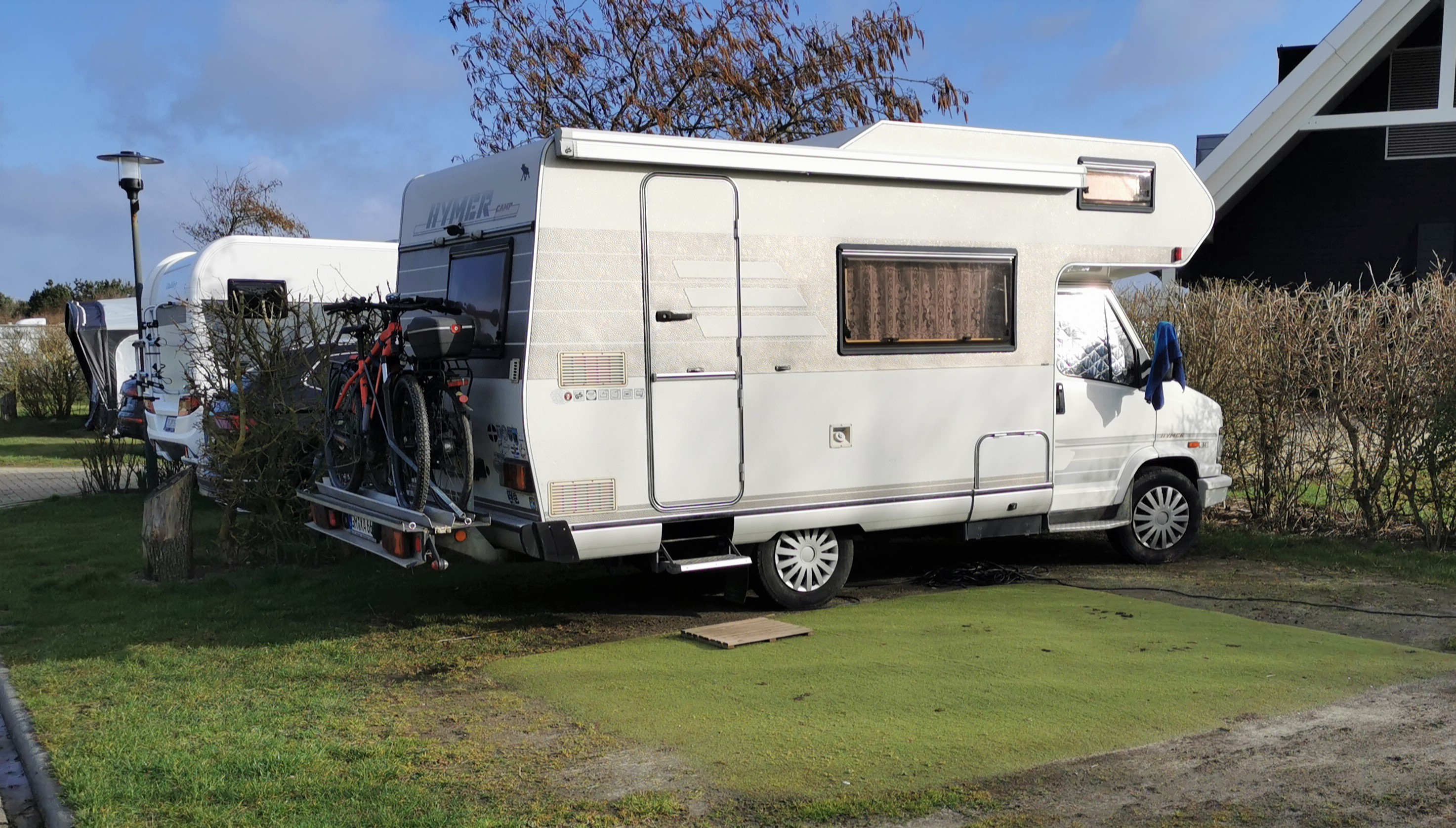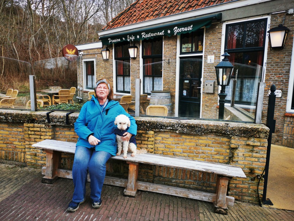 Als wir ankamen besserte sich das Wetter und es sollte die ganzen Tage richtig gut bleiben. Natürlich war es nachts noch kalt, aber tagsüber meist sonnig. Am ersten Tag war es noch ziemlich windig, aber auch das besserte sich. Bei Ardoer braucht man nur sein Kennzeichen zu hinterlegen, dann kann man bei der Ankunft auch gleich durch die Schranke am Eingang. Eine schöne Erleichterung und noch einfacher als die Plastikkarten, die man bei Roompot benutzen muss. Insgesamt hat sich der Platz als sehr schön herausgestellt. Er ist nicht weit vom Meer entfernt, hat einen Supermarkt und die Sanitäranlagen sind sauber und modern. Auch das Wlan funktionierte sehr gut. Auf dem Roompot-Platz in Domburg ist es ja regelmäßig überlastet. Monika und Norbert, die einen Tag später nach Renesse gefahren sind, hatten leider keinen so guten Platz erwischt. Sie waren zwar näher an Renesse, aber alle Einrichtungen des Platzes waren noch geschlossen obwohl anders versprochen. Auch das Wlan funktionierte schlecht. Der Platz hieß camping duinhoeve . Wir haben uns mit ihnen getroffen und waren zusammen lecker essen. Am Tag der Ankunft waren wir nur im Restaurant unseres Campingplatzes. Es ist gemütlich und man konnte sogar am offenen Feuer sitzen. Auch dort war Bruce kein Problem. Überhaupt habe ich selten einen so hundefreundlichen Platz gesehen. Wenn man unbedingt was zu meckern haben möchte – die Hunddusche hatte kein warmes Wasser.