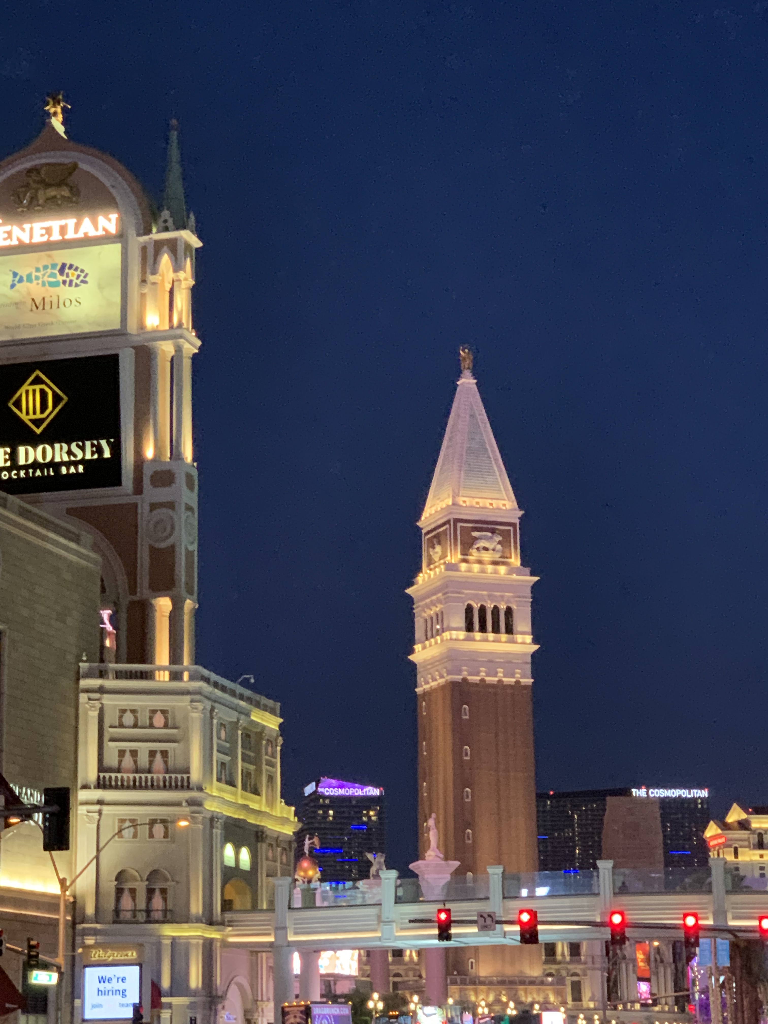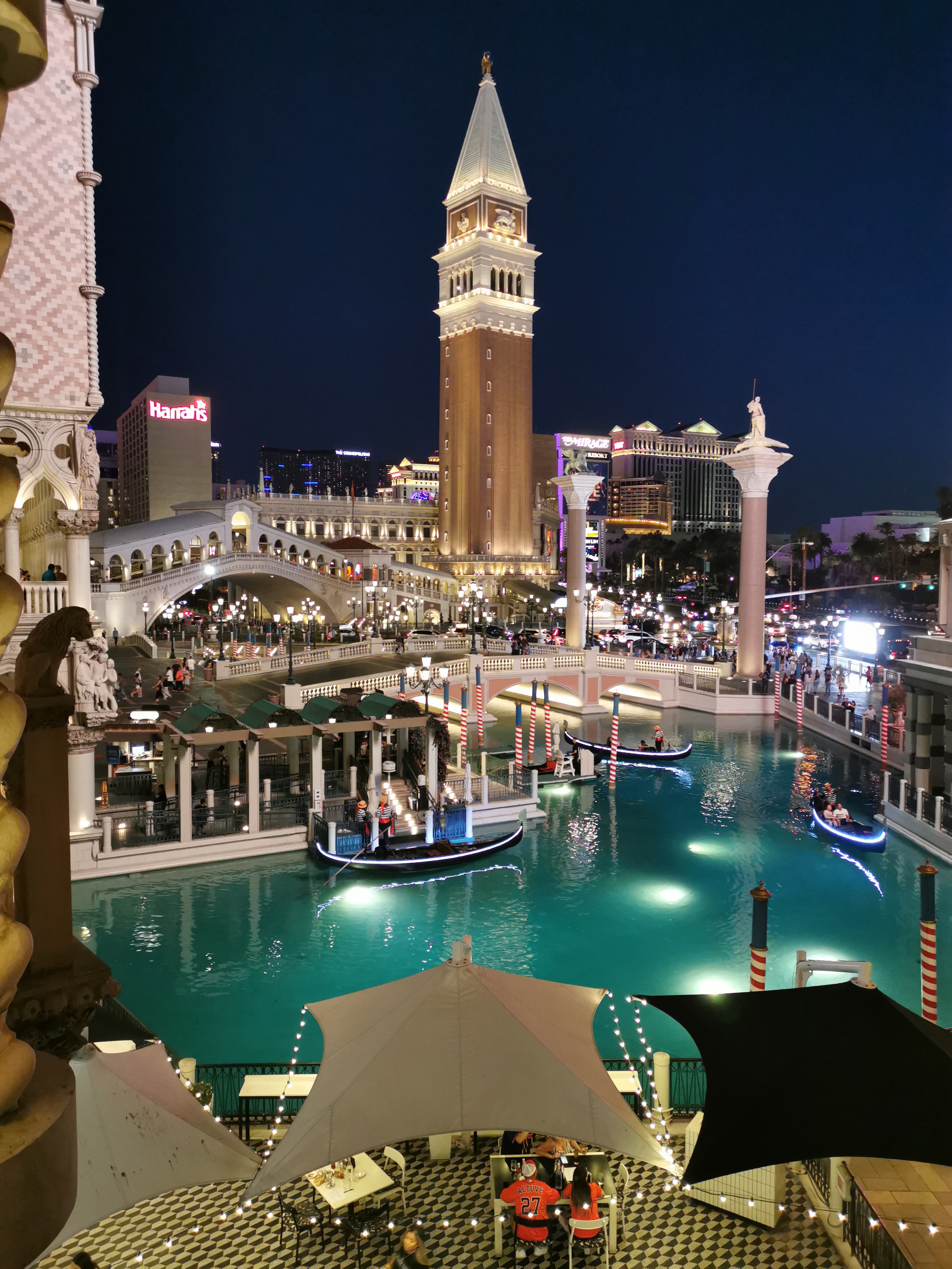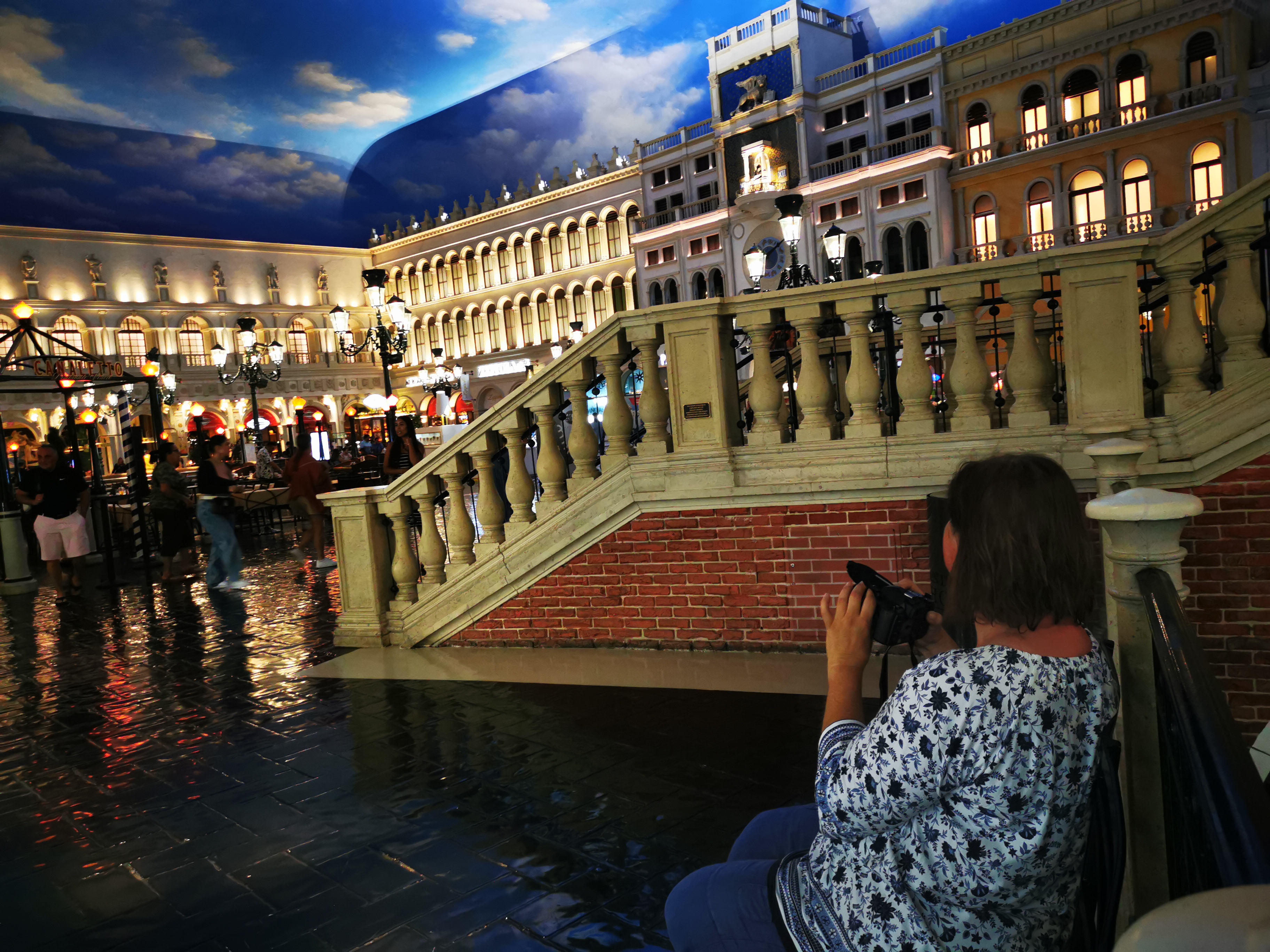 Abends gingen wir nochmal auf den Strip. Diesmal ausgeschlafen und mit dem festen Ziel die Wasserspiele vor dem Bellagio zu sehen. Circus Circus liegt ja schon am Strip und wir gingen auch gleich mal durch. Im Prinzip bietet jedes große Hotel das gleiche. Spielkasino, Ladenstraße und Restaurants. Im Circus Circus kam noch Adventure Land dazu, eine Art Indoorkirmes. Anschließend waren wir im Venetain. Die Decke dort war ja schon oft im Fernsehen und ich muss sagen, man muss schon zweimal hinsehen um zu glauben, daß man nicht im Freien ist. Ich war noch nicht in Venedig, aber ich glaube so sauber wie im Venetain ist es nicht. Wir haben dort eine Pizza gegessen und uns glatt verlaufen.