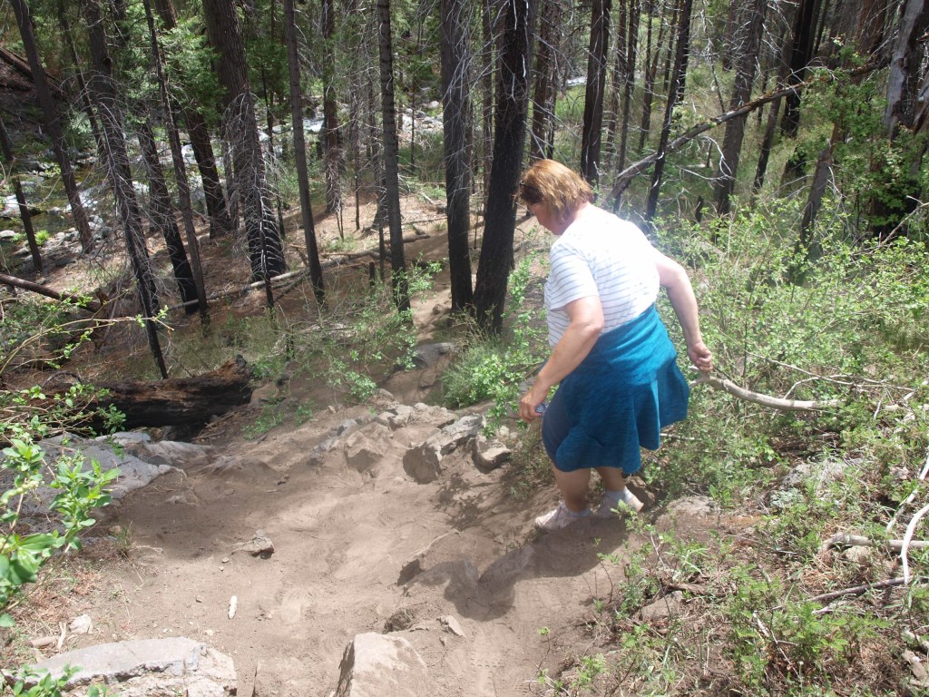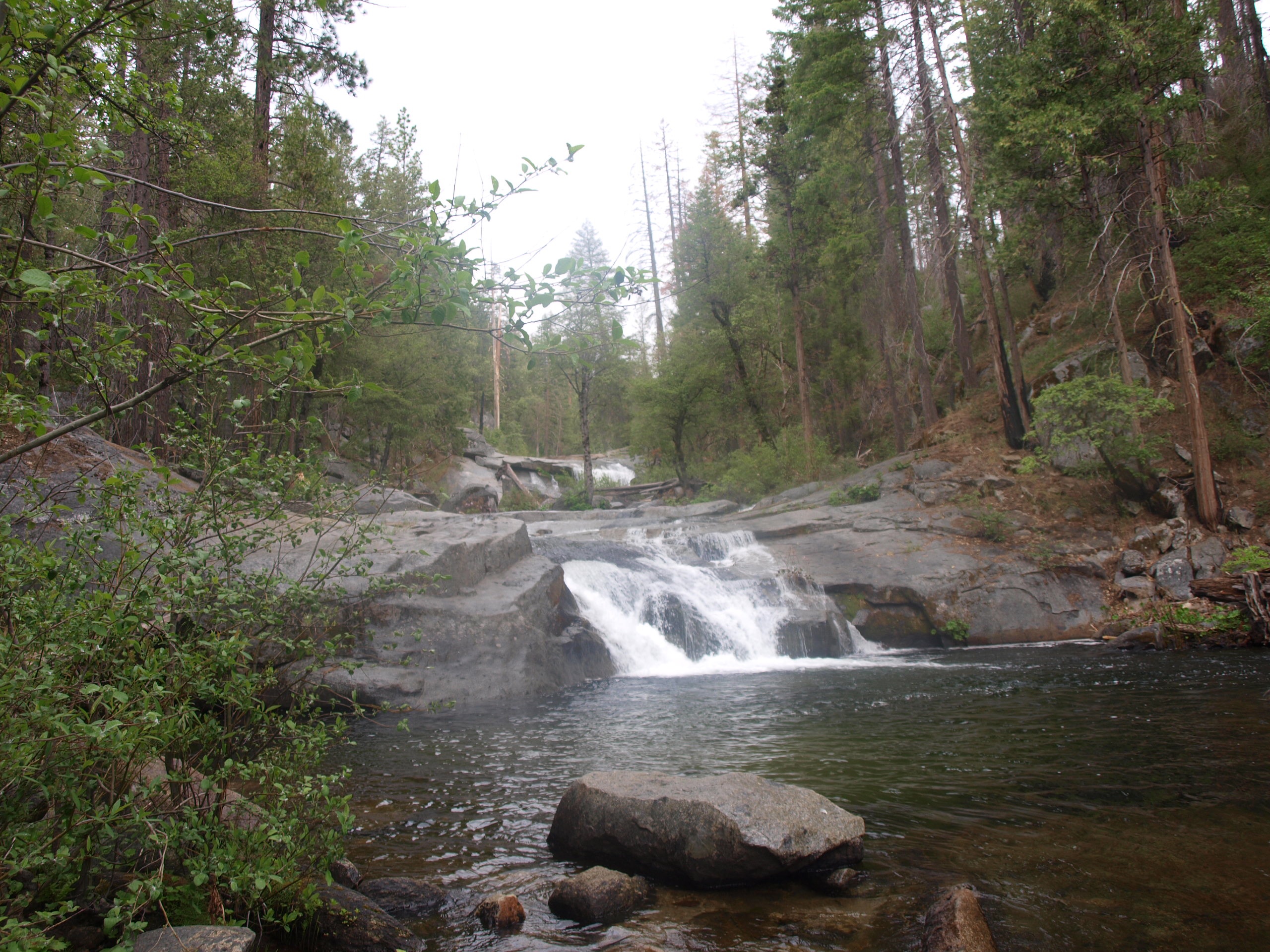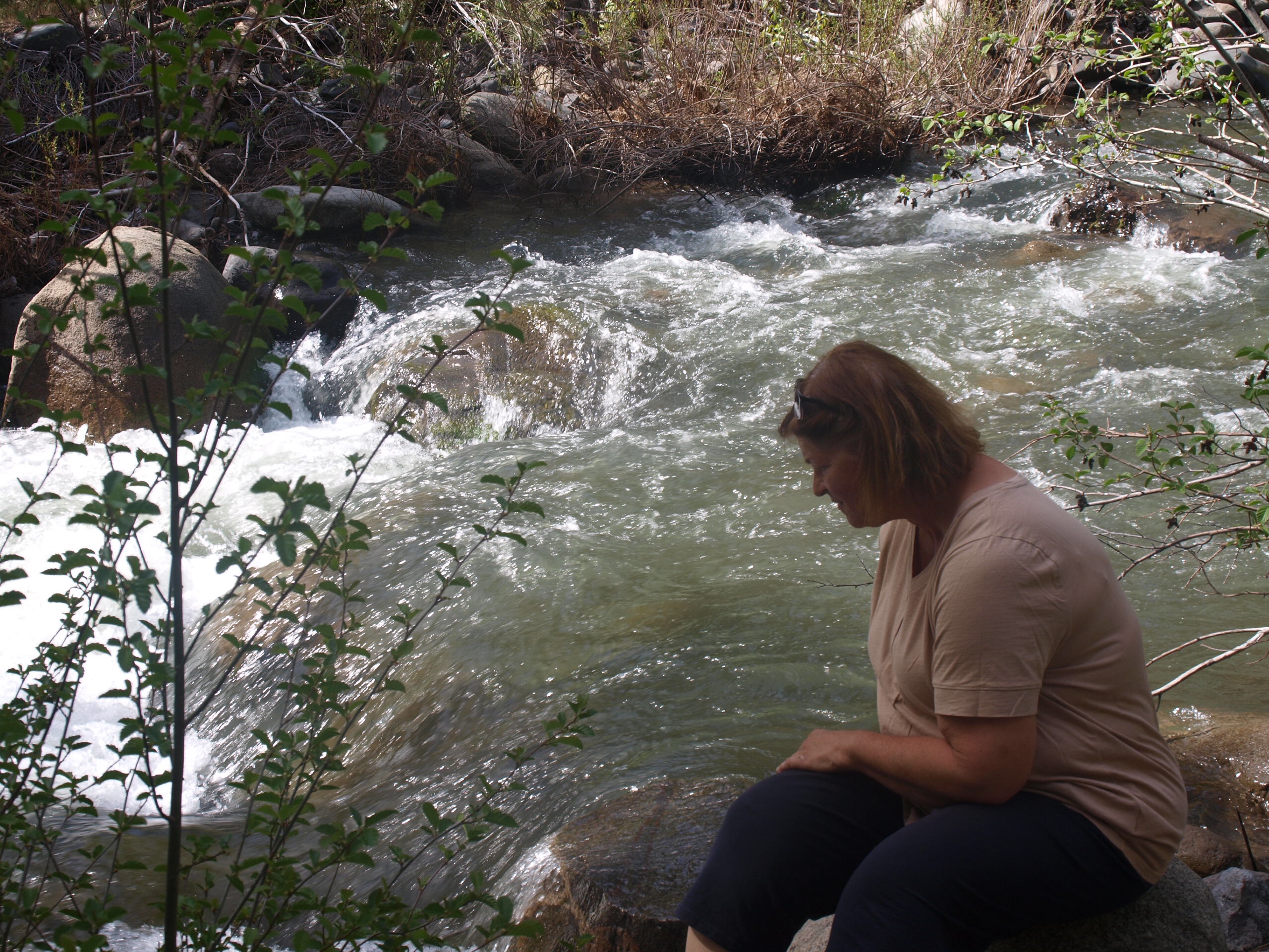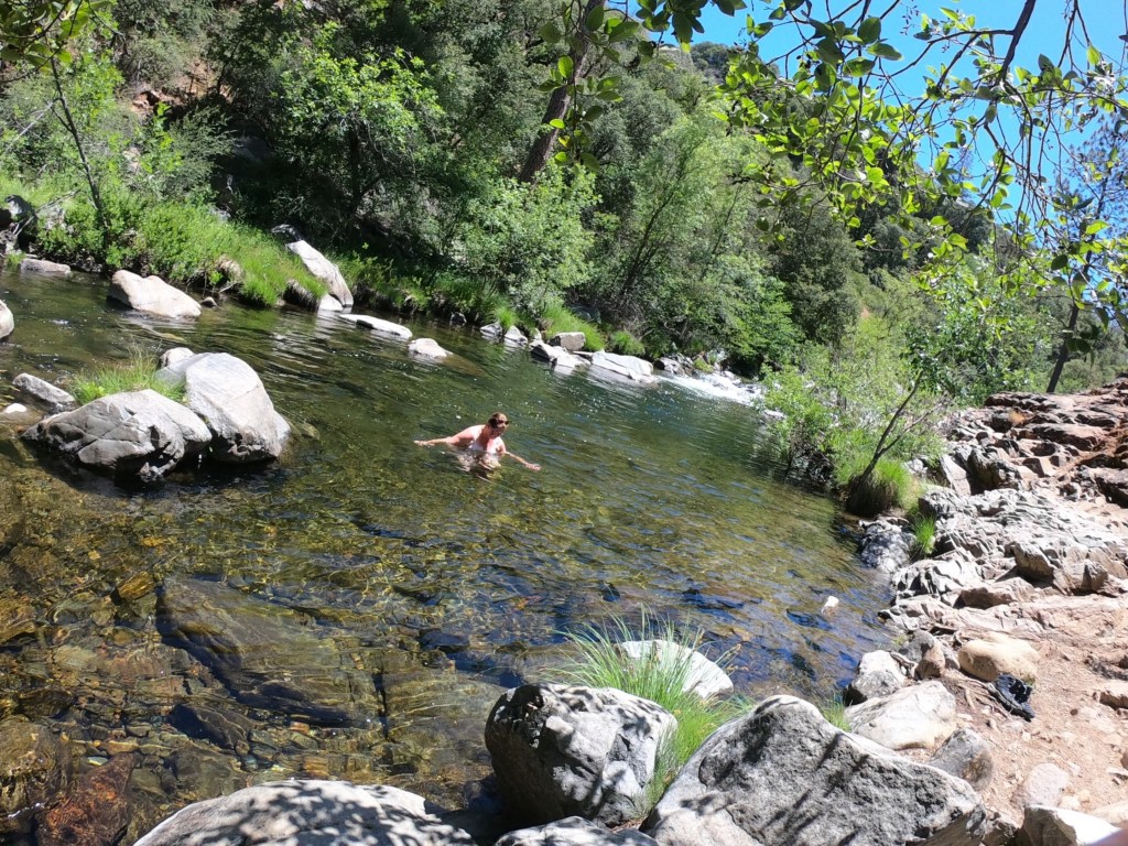 Der nächste Halt war schon nahe am Yosemite. Der Platz nannte sich Sweetwater, wie im Western. Er war aber eine Super Basis für unsere Besuche der Carlon Falls und des Rainbow Pools. In letzterem bin ich auch geschwommen und Marion später ein Stück stromaufwärts.
