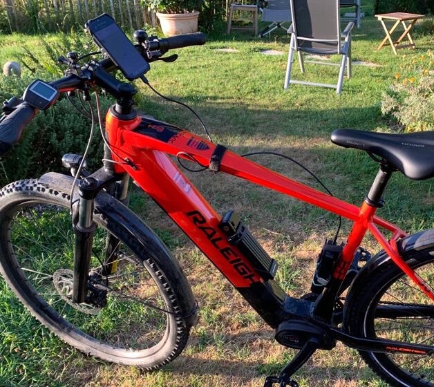 Die Idee einer Radtour nach Vrouwenpolder hatte ich schon vor dem Urlaub in den USA. Eine Zeit lang überlegte Mark ob er mit fährt, aber es ergab sich nichts weil ich zeitlich genau auf die Betriebsferien von Astro festgelegt bin. Zu meinen Vorbereitungen gehörte die App Komoot und eine Powerbank um mein Handy lange genug betreiben zu können. Auf dem Bild ist zu sehen wie ich alles am Rad befestigt habe. Eine Woche vor dem Start hatte ich noch einen Plattfuss. Ich habe den Mantel gleich durch einen unplattbaren von Schwalbe ersetzt. Schon mit meinem alten Rad habe ich damit gute Erfahrungen gemacht. Außerdem habe ich Hotelzimmer in Venlo und Breda im Voraus gebucht.