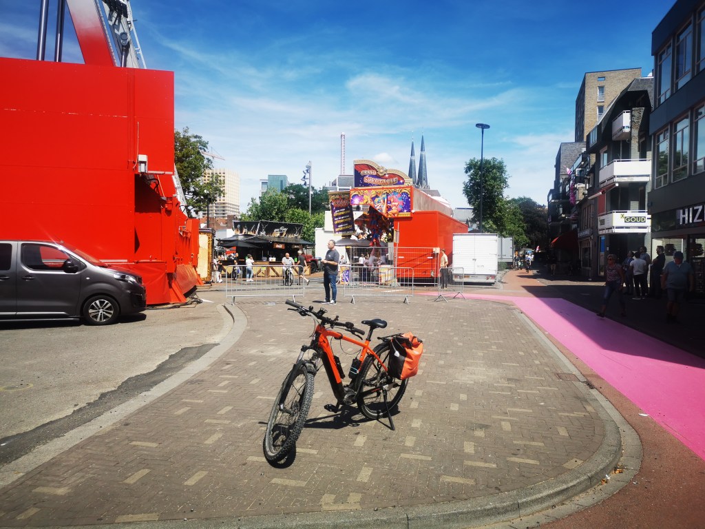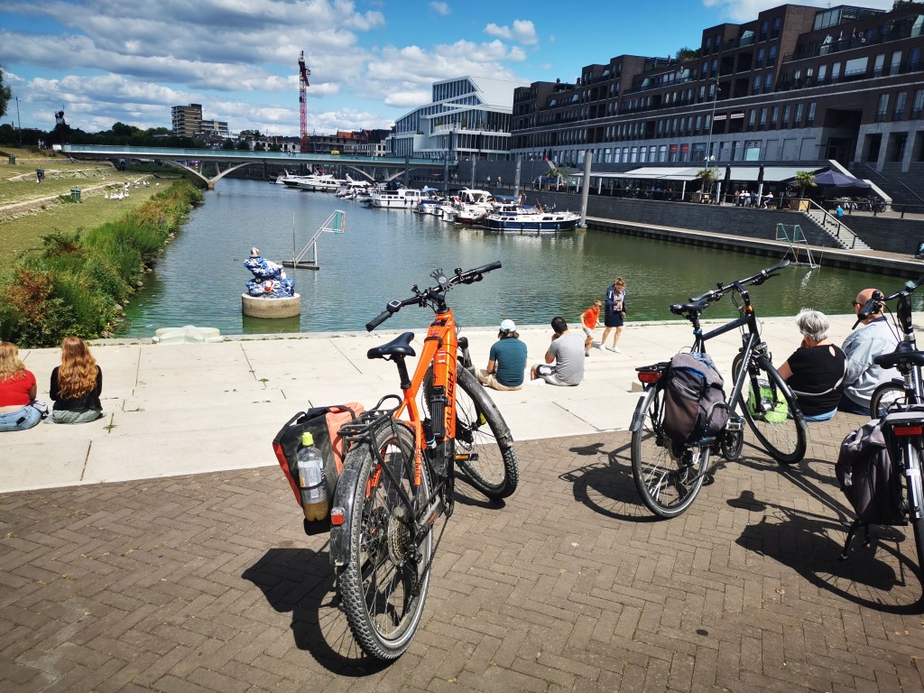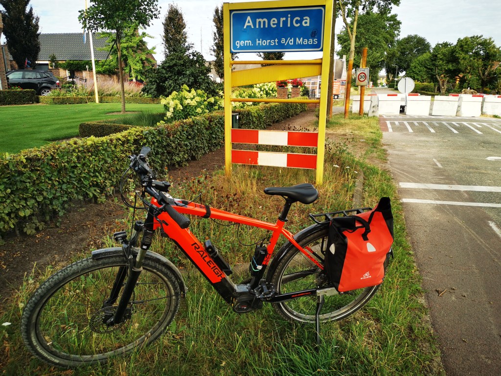 Marions und mein Plan war das ich Mittwoch starte und wir uns Freitags auf dem Camping „de Zandput“ in Vrouwenpolder treffen. Ich startete am Mittwoch, dem 27.07.22 schon um halb acht morgens. Ich konnte noch nicht einschätzen wie gut die Navigation mit Komoot und meinem Handy funktioniert. Die App leitete mich erst mal über Engeldorf nach Dürscheid. Wer sich ein wenig auskennt weiß das dieser Weg, von Lindlar aus, der denkbar ungünstigste ist wenn man Steigungen vermeiden möchte. Auch wenn mein Ebike einen starken Motor hat, hätte ich die Strecke durch das Dürschtal bevorzugt. Aber selbst schuld, schließlich kenn ich mich aus und muss keiner App blind folgen. Danach ging es über Nebenstraßen nach Voswinkel. Man hatte eine tolle Sicht auf Köln und die ganze Rheinebene. Den Abschnitt nach Leverkusen kannte ich noch von der Tour mit den Jungs. Diesmal ging es aber gleich bei Monheim über den Rhein. Ein Stück bin ich den Fluss entlang gefahren bis nach Dormagen. Von dort ging es nach Neuss. Das ist so eine Passage die man halt hinter sich bringen muss. In Neuss leitete die App mich entlang eines kleinen Flusses und dann über Land nach Grefrath. Inzwischen war es zwölf Uhr durch und ich hatte Hunger. Die Auswahl an einem Mittwoch war nicht so groß, aber die Pizzeria, die ich fand war gut. Auf einem Schild las ich das Venlo nur noch 15 km entfernt ist. Der Weg führt durch die Venloer Heide und erst an den Verkehrsschildern merkte ich das ich schon in Holland war. Das Hotel American war schnell gefunden und ich hab erst mal den Ort erkundet. So oft war ich noch gar nicht in Venlo, aber es ist natürlich keine Unbekannte.