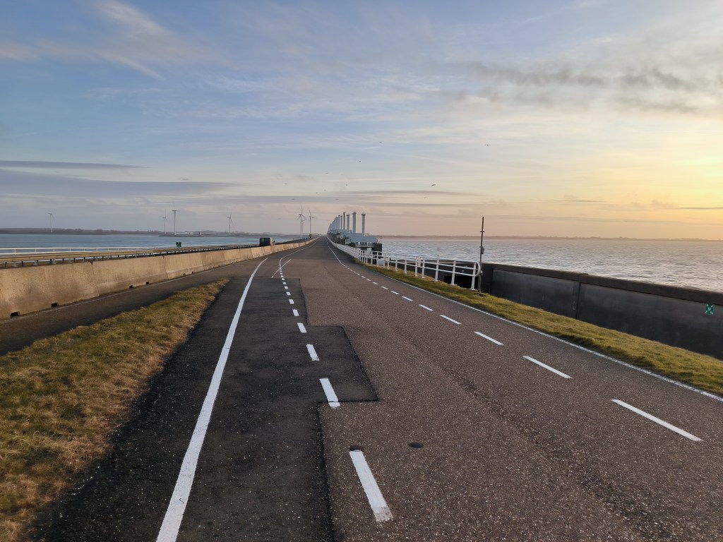 Der Freitag wurde sonniger als gedacht. Wir waren am Strand spazieren und in der Strandbude „De Dam“, die ca. 4 km entfernt liegt. Gegen Abend war ich noch eine Runde joggen und bin dabei ein Stück über das Oosterschelde-Sturmflutwehr gelaufen.