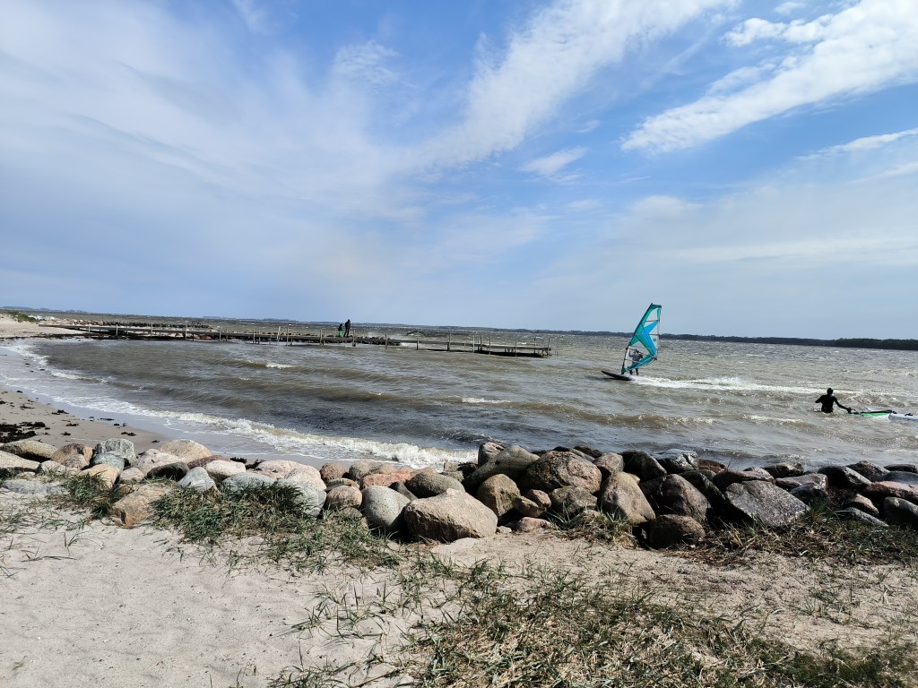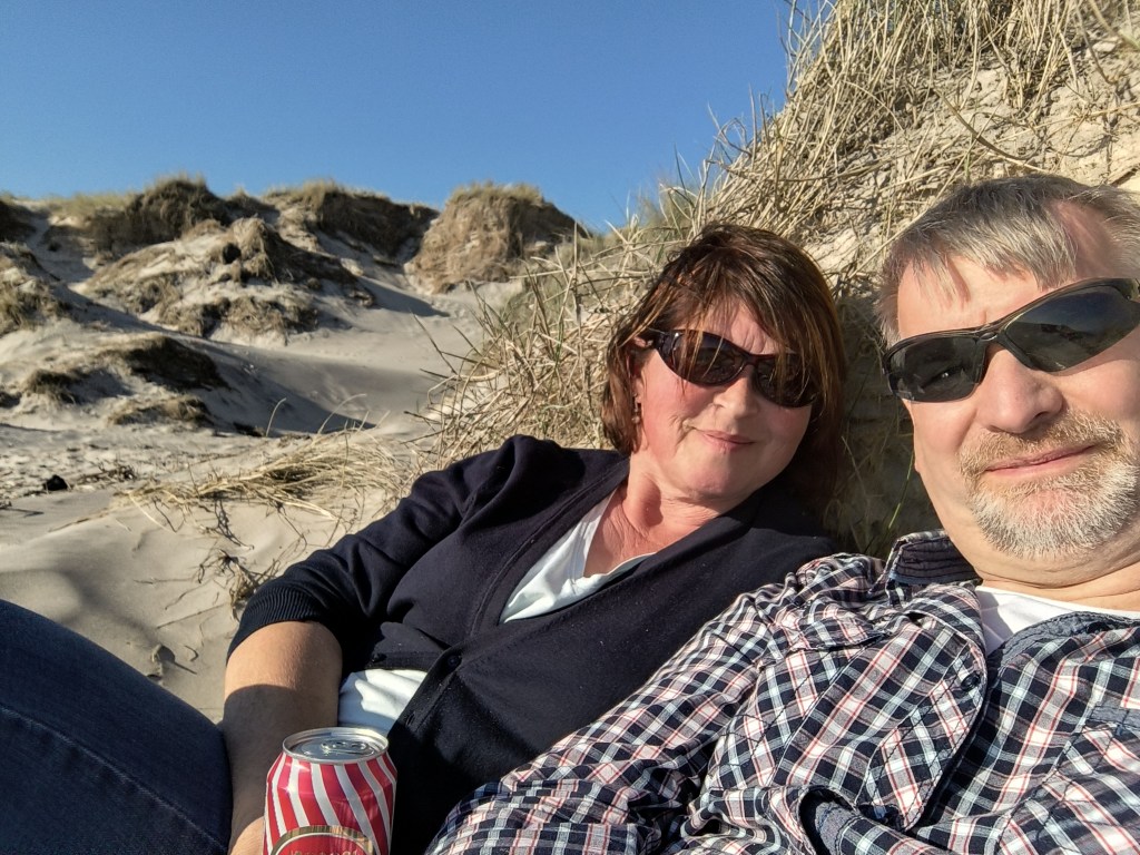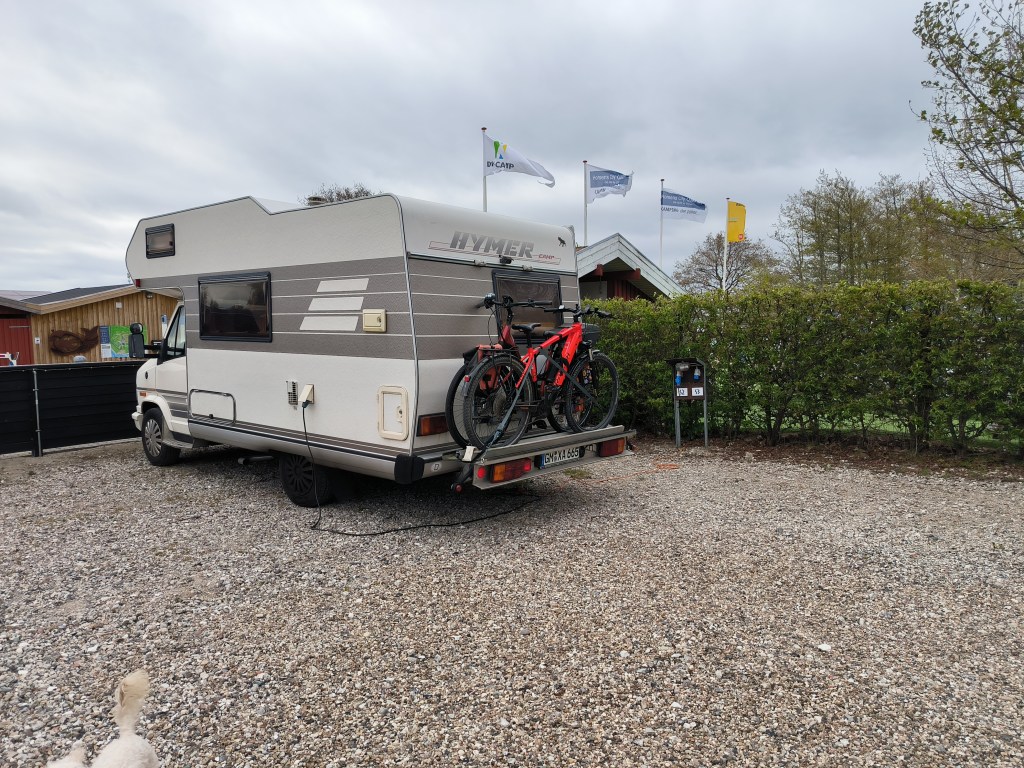 Hirtshals war schnell erreicht und empfing uns mit strahlendem Sonnenschein. Wir sahen uns erst Mal den Fähranleger an und standen dann am Strand. Wir überlegten dort zu bleiben, aber in Dänemark ist wild campen verboten. Wir suchten im Netz einen Nahegelegenen Stellplatz und entschieden uns für den Strandcamping Tornby. Der Strand war dann doch ca. 2 km entfernt, aber gut zu erreichen.