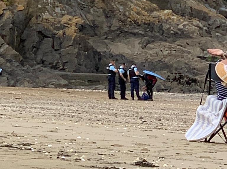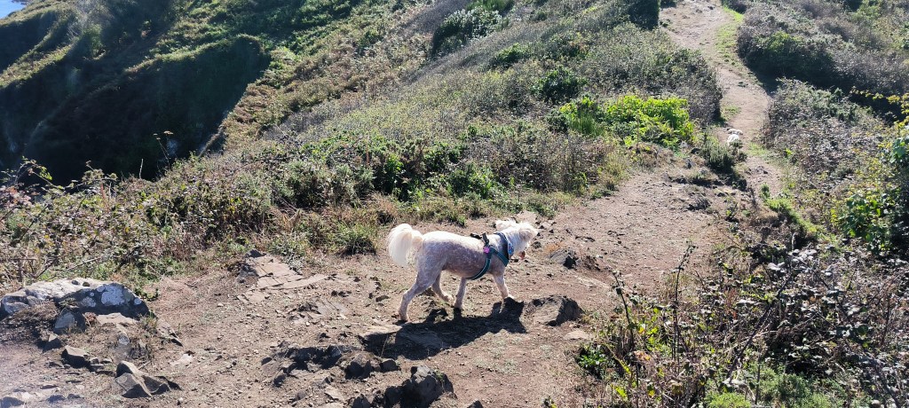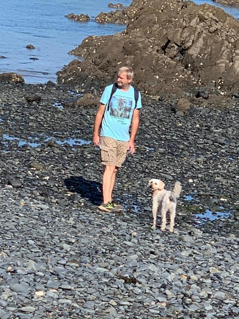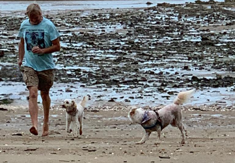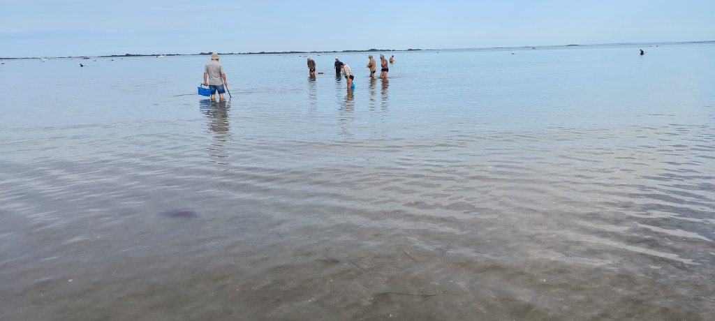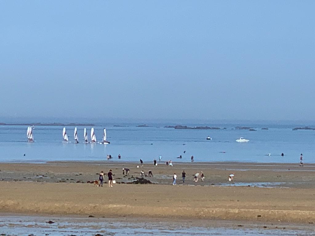Der Morgen des 2. Okt. ist diesig bis vernebelt. Bruce und ich waren erst Mal eine Runde joggen. Wir beschlossen beim Frühstück mit den Rädern nach Saint-Quay-Portieux zu fahren. Dabei kommt man wieder durch Binic und wir halten auf einen Kaffee. Unser nächster Halt ist der Strand „Plage du Moulin“. Hier gibt es auch Stellplätze für Wohnmobile. Wir sind etwas über den Strand spaziert und dann weiter gefahren. In Portieux haben wir erst mal den Hafen erkundet und dann die Stadt. Der Ort ist ziemlich mondän, kein Vergleich zu Saint Brieuc. Am Hafen haben wir gesessen und die Sonne genossen. Die Hunde haben sich lieber in den Schatten verzogen. In einem Supermarkt kauften wir alles für ein Picknick und fuhren zurück zum Strand. Dort waren inzwischen viele Leute und suchten nach Muscheln. Die Polizei kontrollierte ob sie auch nur die erlaubte Größe sammelten. Insgesamt ein schöner Tag, den wir uns mit einem Bier und Cider in Binic versüßten.