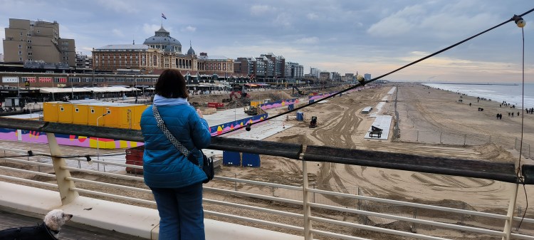 Zu spät ist und eingefallen, dass wir über Karneval weg fahren könnten. In Domburg und Umgebung war schon alles ausgebucht. Marion hat dann noch etwas bei Scheveningen gefunden. Der Platz in Kijkduin wäre sonst wohl kein Ziel geworden. Für ein paar Tage war er aber in Ordnung. Gleich nach unserer Ankunft am Freitag, dem 09. Feb. sind wir mit den Rädern nach Scheveningen gefahren. Wir waren am Hafen und haben lecker gegessen. Am Samstag ging es ins Zentrum von Den Haag. Mit den Rädern waren es ca. 8 km. Ich habe ein paar neue Laufschuhe gekauft und auf dem Rückweg waren wir in Scheveningen am Pier und der Promenade. Die wird zwar gerade umgebaut, aber wir haben trotzdem ein Lokal gefunden in dem wir warm sitzen und lecker essen konnten. Am Sonntag habe ich eine Radtour gemacht in Richtung Hook van Holland. Am Nachmittag waren wir dann wieder in Scheveningen.