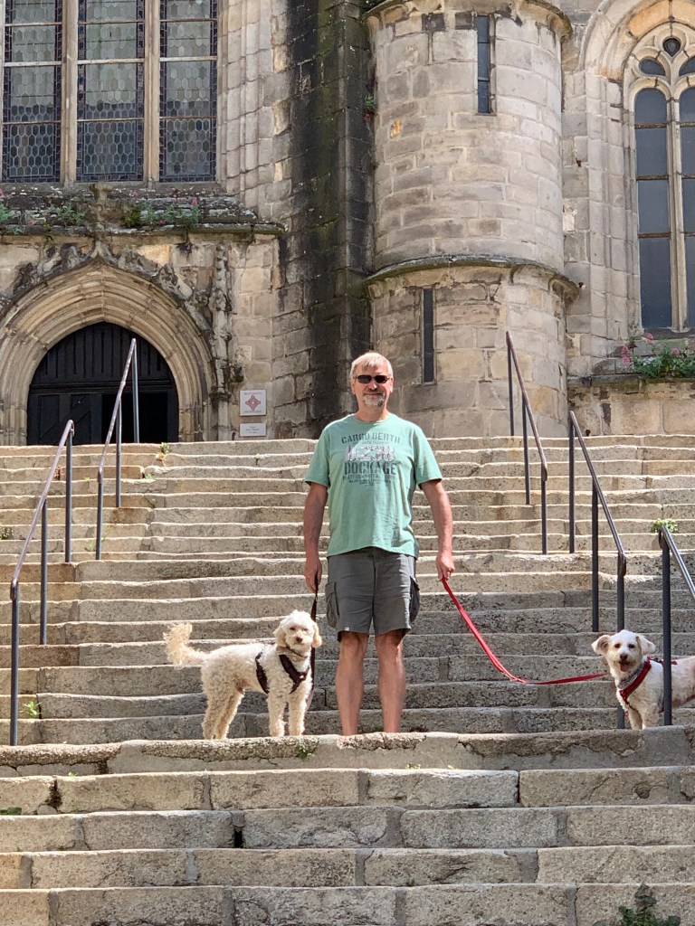 Der nächste Tag empfing uns mit schönem Wetter. Wir sahen uns den Ort an, der durchaus sehenswert ist. In der Kathedrale Paul-Aurelien übte gerade ein Chor. Anschließend fuhren wir über ein Teilstück des EuroVelo4-Radwegs nach Roscoff. Dort haben wir am Hafen gesessen und lecker gegessen.
