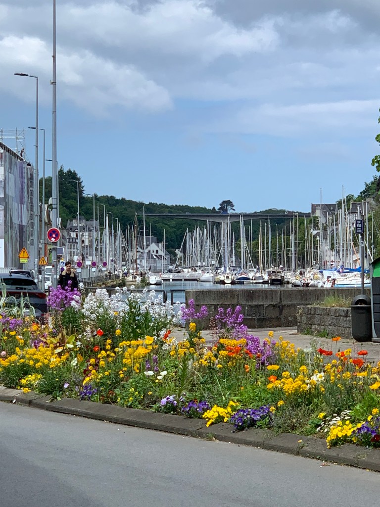 Für Freitag, den 17. Mai hatten wir einen Ausflug nach Morlaix geplant. Wir sind mit dem Womo gefahren, weil die Strecke doch etwas weit für Fahrräder ist. Die Stadt hat nette Ecken, kann aber mit Lannion nicht mithalten. Da waren wir uns einig, trotzdem war es ein schöner Ausflug. Marion war vor allem von den toll angelegten Blumenbeeten beeindruckt. Den Rückweg haben wir über Roscoff gewählt und diesmal auf der Hafenmauer geparkt. Im Prinzip darf man da auch über Nacht stehen. Früh morgens wird es aber laut weil die Fischer arbeiten.