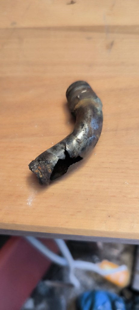 Schon bei unserer Tour nach Wolphartsdjik hatten wir Probleme mit dem Kühlkreislauf. Damals reichte es den Schlauch etwas weiter auf den korrodierten Nippel zu schieben. Jetzt war es aber nötig ihn zu tauschen. Kalli hat mir dabei sehr geholfen. Weil nach unserer Probefahrt noch etwas Öl aufgefallen war, hat er auch noch eine neue Ventildeckeldichtung eingebaut.