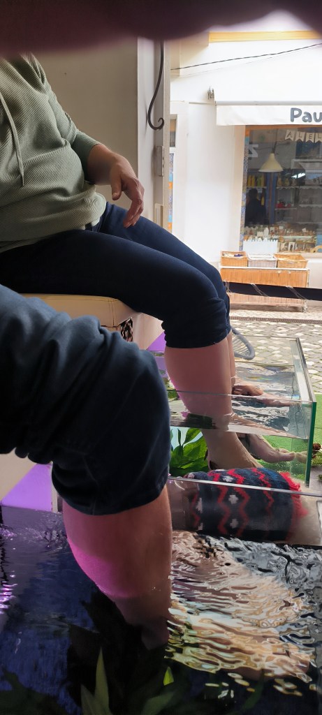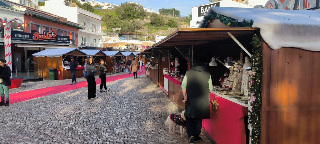 Von Minas de Rio Tinto nach Faro waren es nur noch 180 km. Wir waren noch vor Mittag in Faro und haben am Hafen geparkt. Nachdem wir uns den Teil der Stadt angesehen haben und einen Kaffee getrunken hatten, sind wir zum Faro Campvanpark gefahren. Schon die Stadt fanden wir nicht so toll, der Stellplatz lag nun inmitten dichter Bebauung und beim Flughafen. Deshalb beschlossen wir lieber was bei Albufeira zu suchen. Es stellte sich heraus, dass viele Plätze schon ausgebucht waren. Der anvisierte Platz war es auch und wir mussten uns mit dem weniger schönen Nachbarplatz abfinden. Am ersten Tag hatten wir einen Platz ohne Strom aber am zweiten konnten wir auf einen mit Strom wechseln. Unser erster Ausflug ging nach Vilamoura und Quarteira. Am zweiten Tag waren wir in Albufeira, wo sogar ein Weihnachtsmarkt aufgebaut war. Am dritten Tag waren wir in Quarteira auf dem Markt und ich war am Strand gleich hinter unserem Stellplatz.