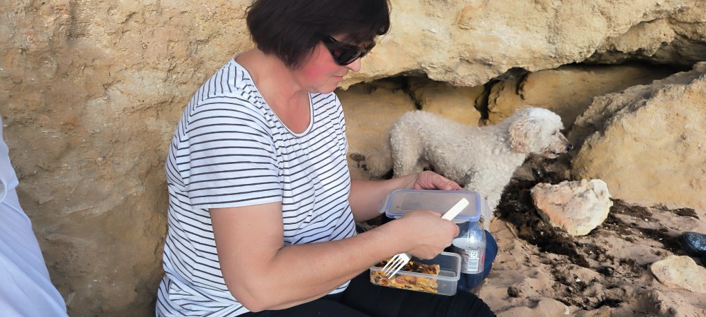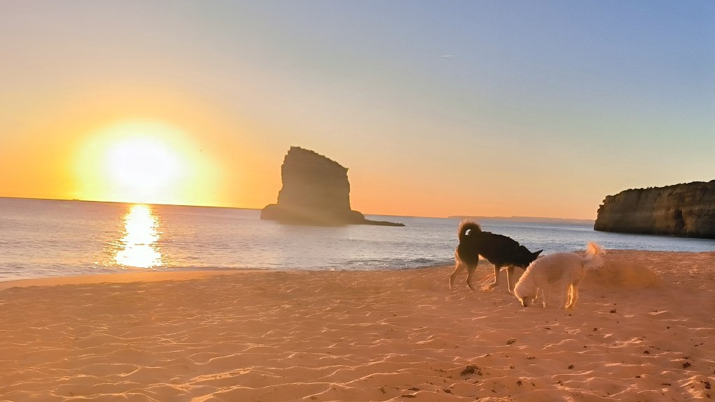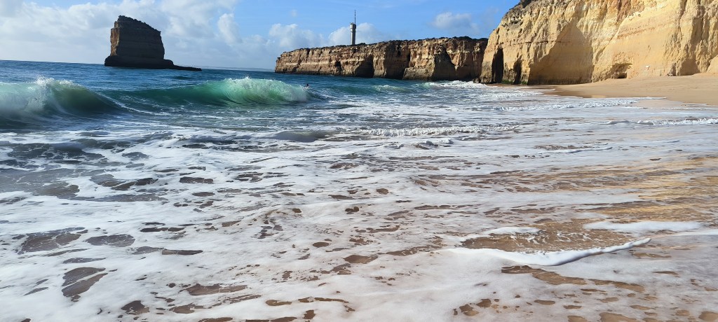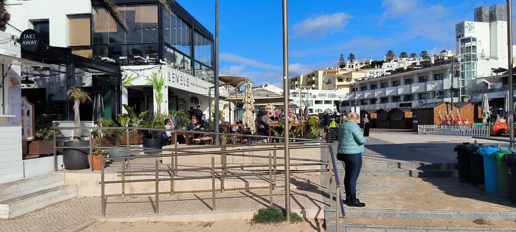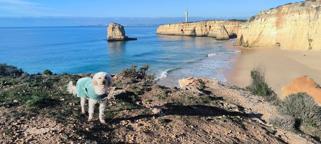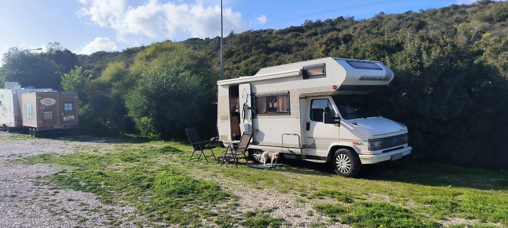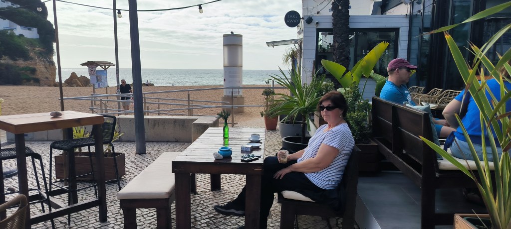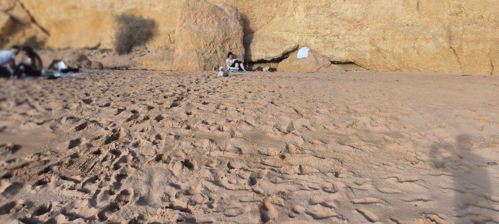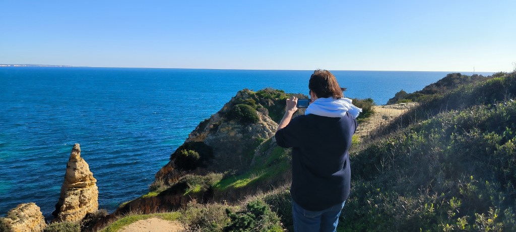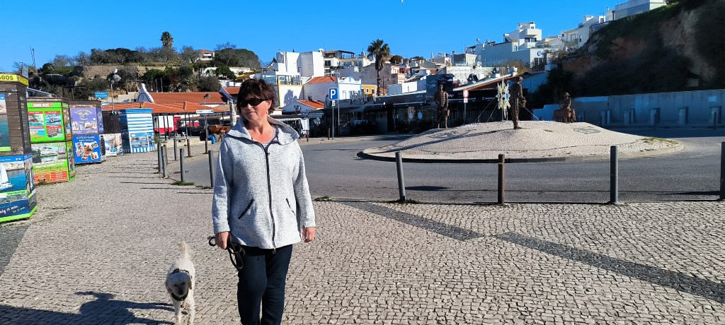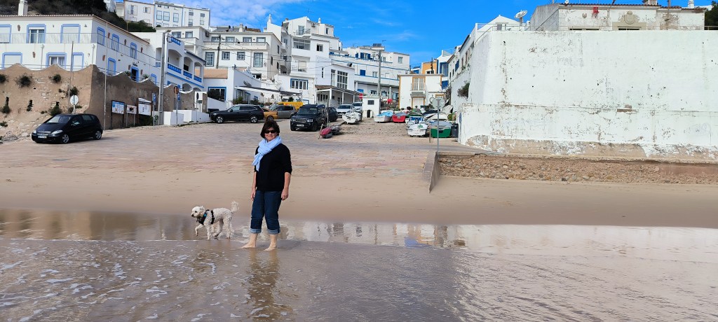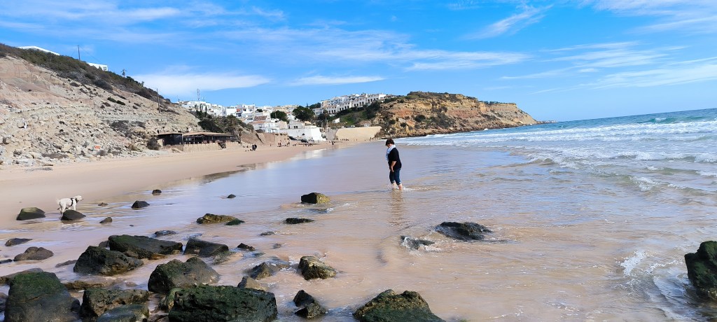Nach drei Tagen bei Albufeira war Carvoeiro unser neues Ziel. Laut Reiseführer ein nettes Fischerdörfchen, jetzt allerdings touristisch voll erschlossen. Von dem Fischerdorf war nichts mehr übrig. Leider gab es den Campingplatz aus dem Netz nicht mehr, dort stehen jetzt Nobelvillen. Wir parkten und spazierten durch den Ort und tranken Kaffee. Sechs Kilometer entfernt sollte es einen Campingplatz geben und auch Stellplätze. Den Campingplatz ließen wir erst Mal links liegen um die Stellplätze anzuschauen. Auf dem Weg sahen wir einige Wohnmobile auf einem Schotterplatz. Das schauten wir uns näher an und fanden eine tolle Bucht gleich hinter dem Parkplatz. Wir beschlossen erst mal an der Praia dos Caneiros zu bleiben und es gefiel uns so gut, daß wir einen weiteren Tag blieben. Wir waren in Ferradugo, dem Ort zu dem die Bucht gehört, und haben uns den Ort angeschaut. Dann waren wir wieder am Strand.