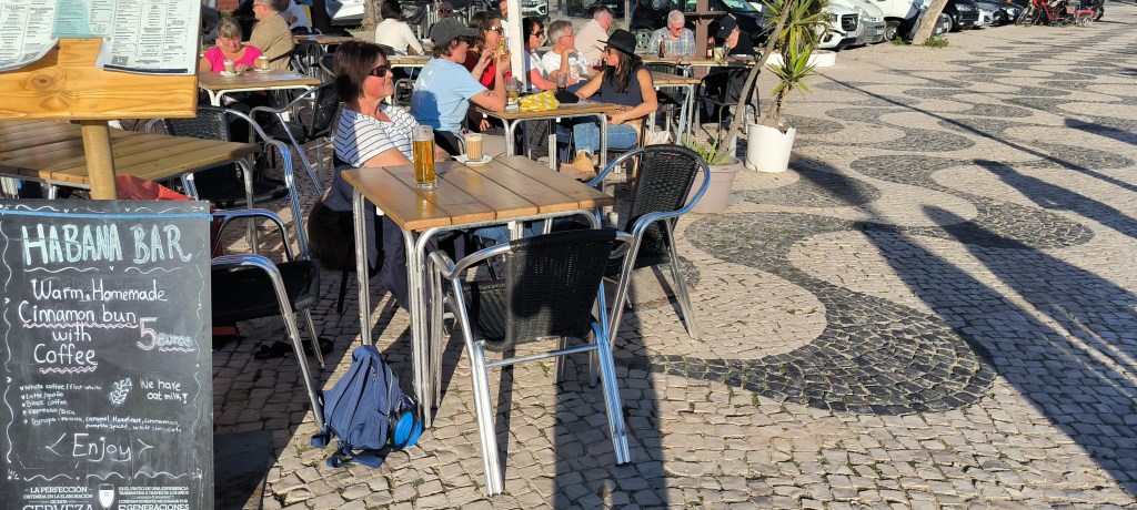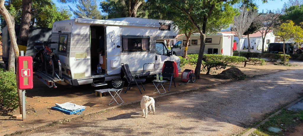 Wir beschlossen Weihnachten in Luz zu verbringen und sind auf den Campingplatz Orbitur gewechselt. Der liegt ca. 1,5 km vor Luz und ist wesentlich komfortabler. An Heiligabend waren wir in Luz. Vor der Bar Habana saßen wir am liebsten. Abends haben wir Raclette gemacht und mit den Rädern waren wir im Nachbarort Burgau.
